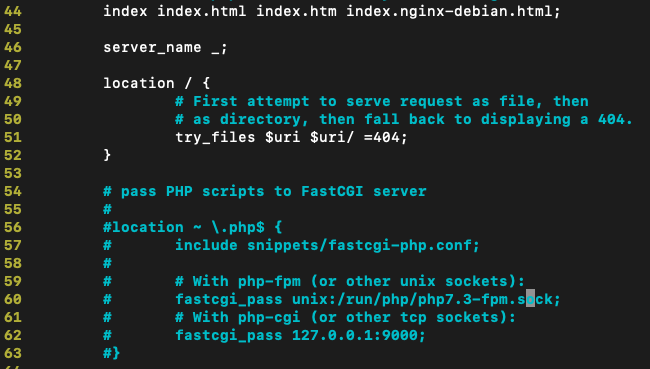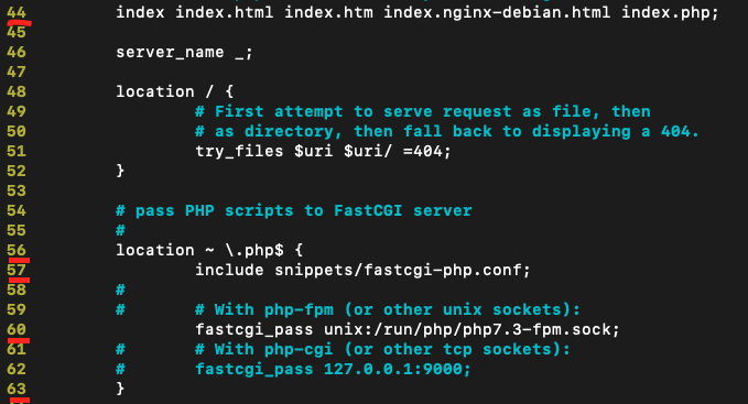 vim /etc/nginx/sites-available/default 에서 진행