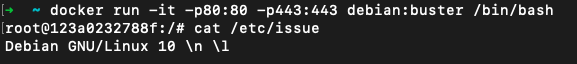 docker run -it -p80:80 -p443:443 debian:buster /bin/bash