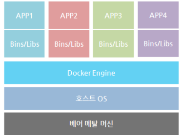 - 리눅스에서 운영 체제 수준 가상화의 추상화 및 자동화 계층을 추가적으로 제공 (ex. vm, vbox)