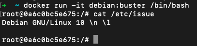 - docker 위에 debian buster를 올려야 하므로 docker run으로 실행해봄
