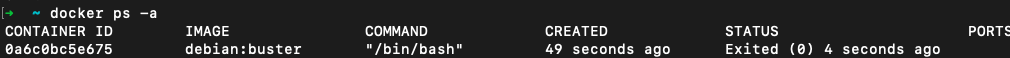 - exit로 종료 후 docker ps -a 으로 종료된 컨테이너도 확인 가능