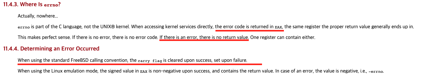 2. syscall이 error라면 carry flag가 활성화 됨 (참고는 아래)