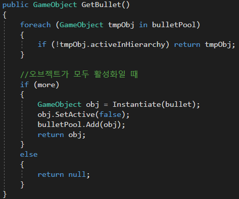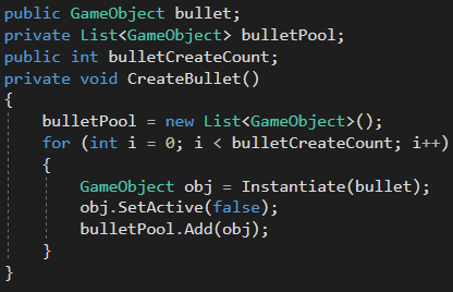 또한 계속 생성(Instatiate)하고 파괴(Destroy)하면 오버헤드가 생기는데 오브젝트풀을 사용해서 방지할 수 있음