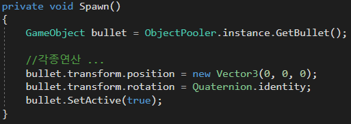 오브젝트 풀링하면 SetActive(true/false)를 매우많이 사용할 것